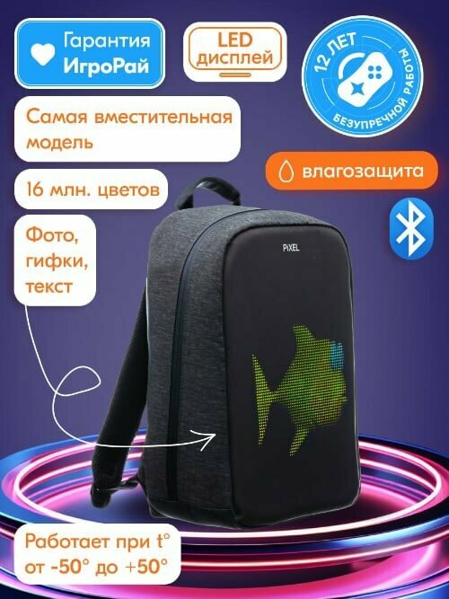 Отзывы на Рюкзак PIXEL MAX Grafit серый (LED-экран 25*25 px, 16,5 млн цветов, 20 л., полиэстер)