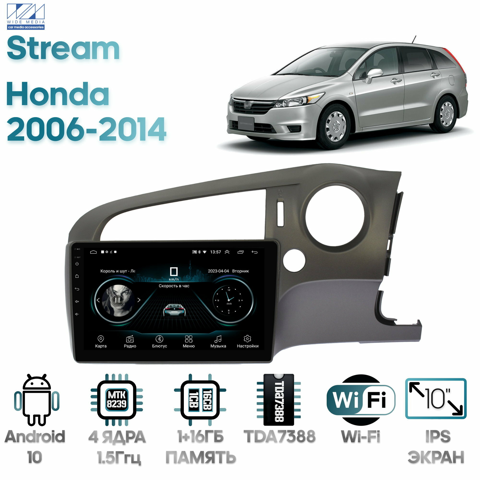 Штатная магнитола Wide Media Honda Stream 2006 - 2014 / Android 9, 10 дюймов, WiFi, 1/32GB, 4 ядра информация: