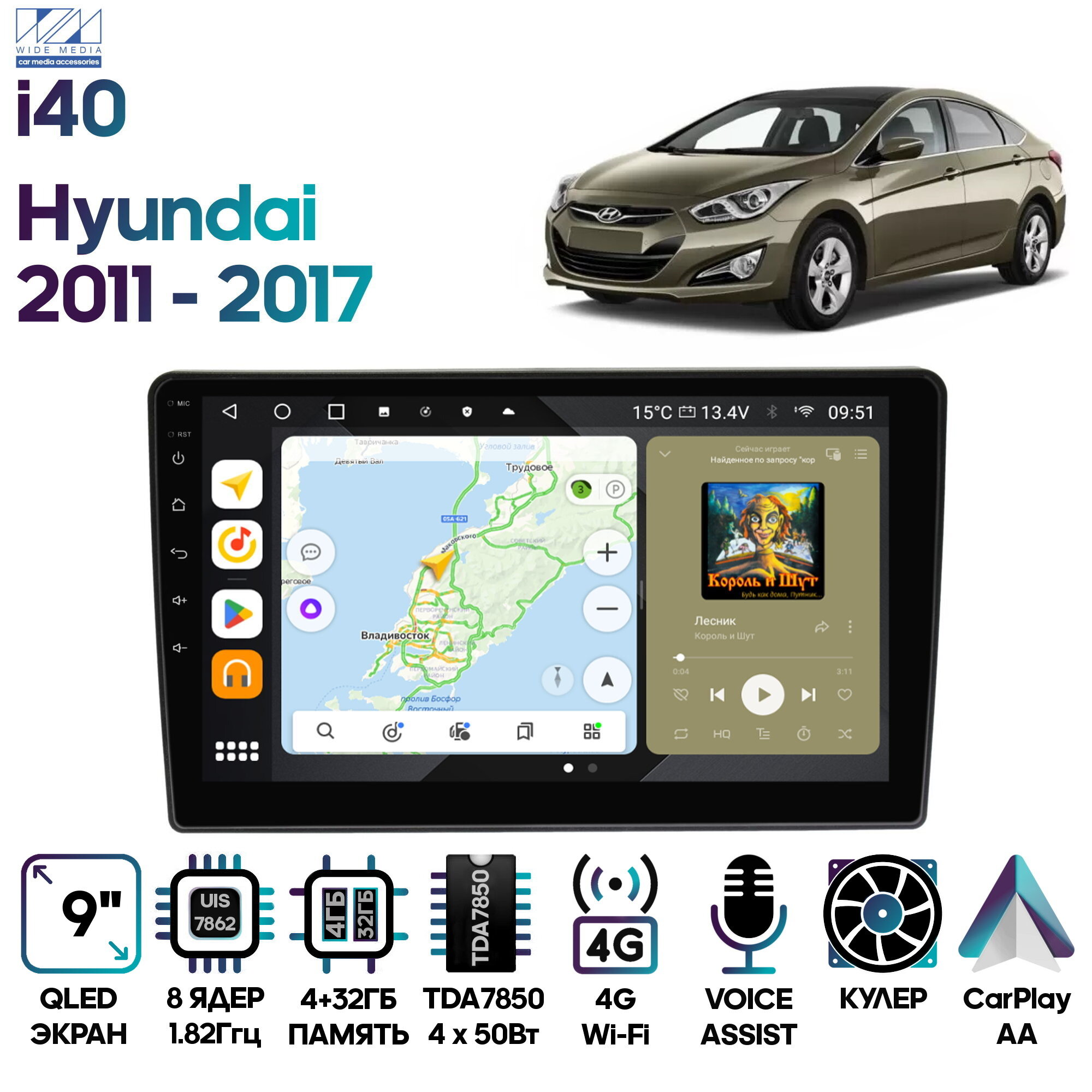 Штатная магнитола Wide Media Hyundai i40 2011 - 2017 [Android 10, 9 дюймов, 4/32GB, 8 ядер, DSP, 4G] информация: