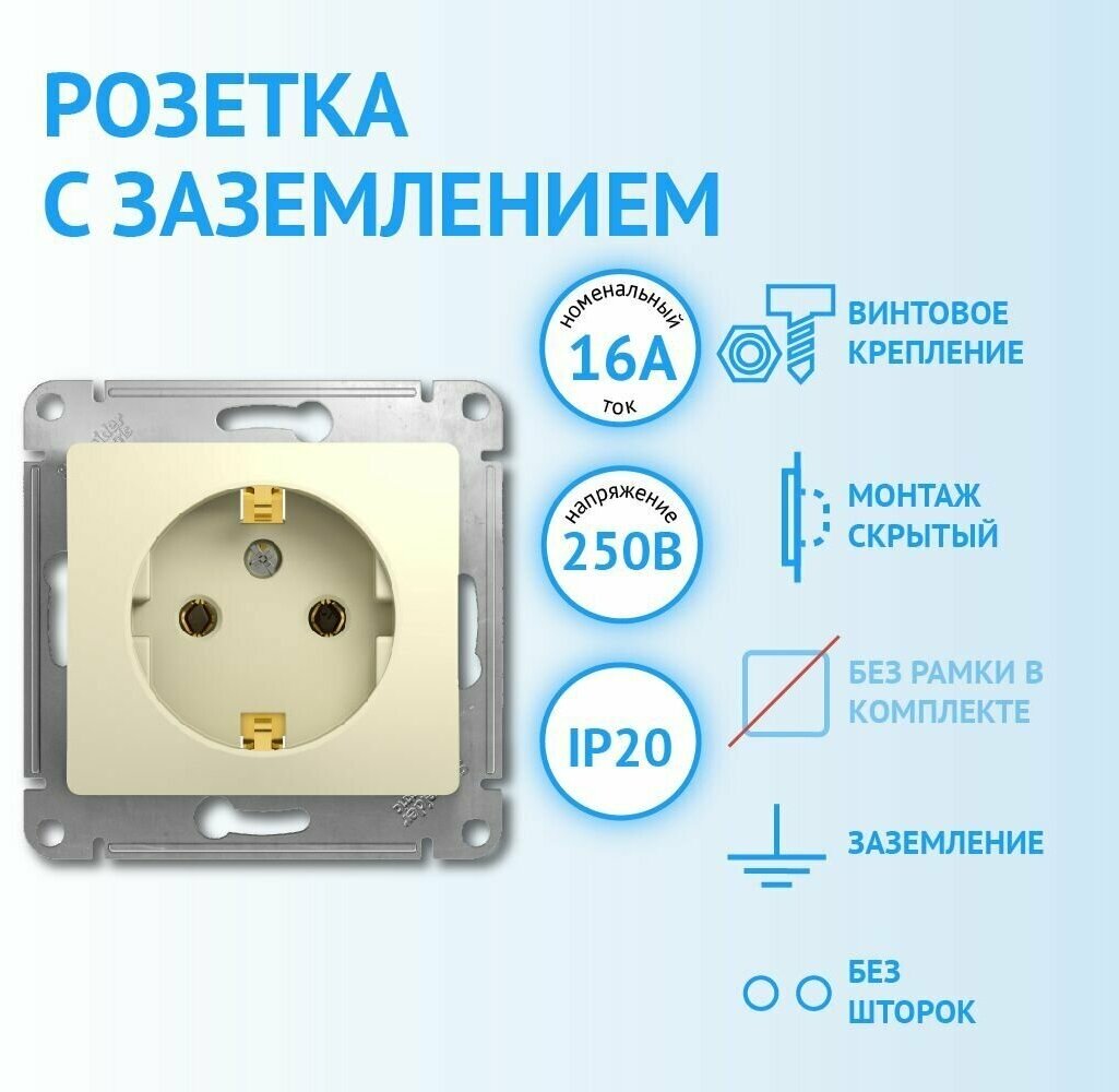 Розетка Systeme Electric GLOSSA, скрытый монтаж, с заземлением, бежевый, GSL000243