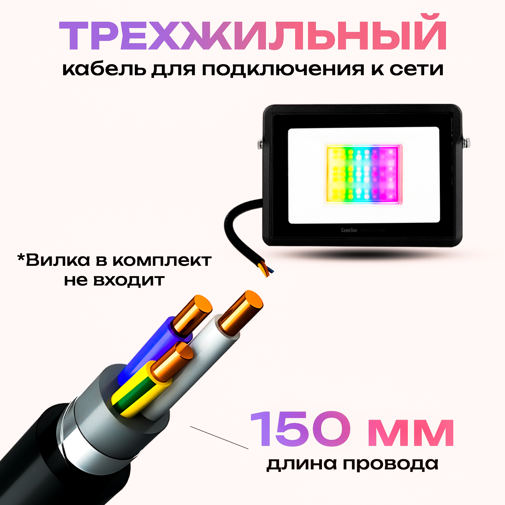 | Дополнительная информация | Управление через приложение на смартфоне: Camelion Smart Home (доступно в App Store, Google Play) , Голосовое управление: Siri, Алиса, Google, Маруся, Alexa |