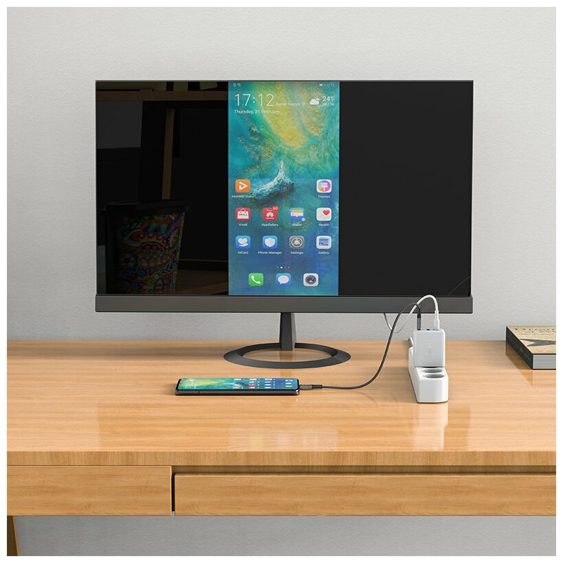 Мультифункциональное зарядное устройство ACEFAST A17 GaN 65W (Type-C PD60W + USB 3.0 5W + HDMI 4K@60Hz) + Кабель Type-C to Type-C 3.1, 1.8м, Белый