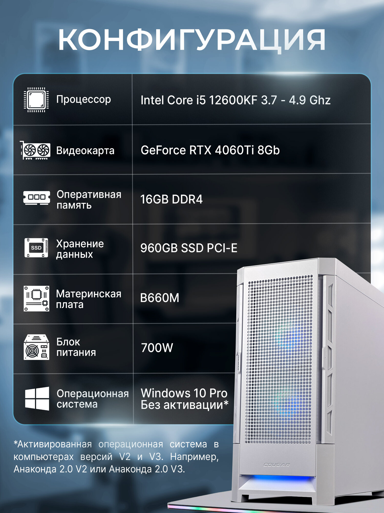 Игровой компьютер Robotcomp Анаконда V2 / Intel Core i5 12400F - 6 Core / 16GB / 512GB SSD Pci-E / RTX 3060 12GB / B660M / 700W / Windows 10 Pro