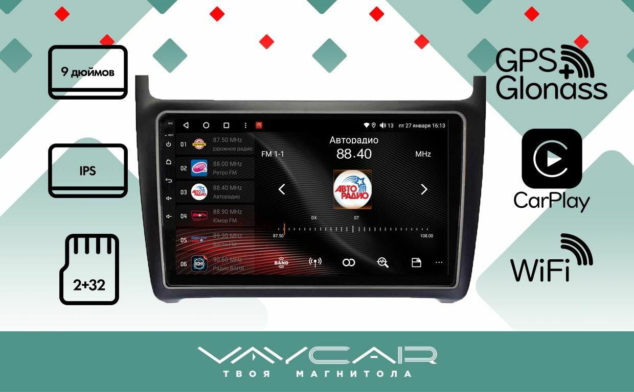 Магнитола Vaycar 09L для VOLKSWAGEN POLO 2009-2019 Андроид, 2+32Гб информация: