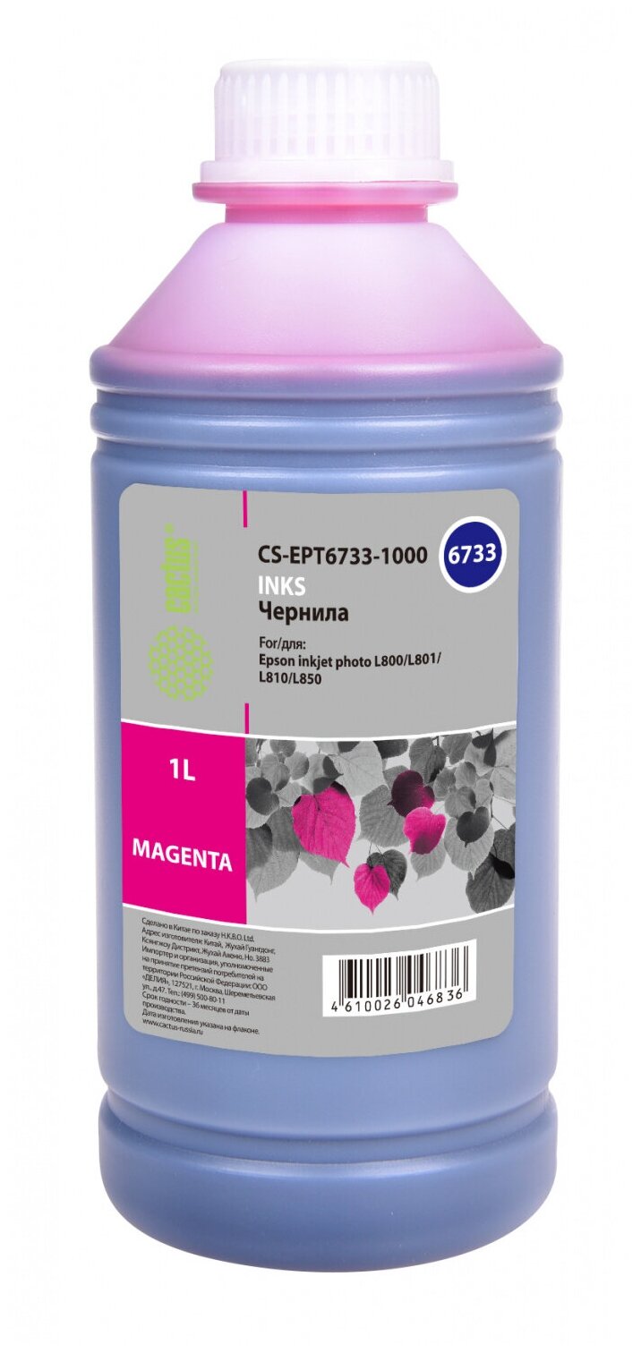 Чернила Cactus CS-EPT6733-1000 T6733 пурпурный 1000мл для Epson L800/L810/L850/L1800 информация:
