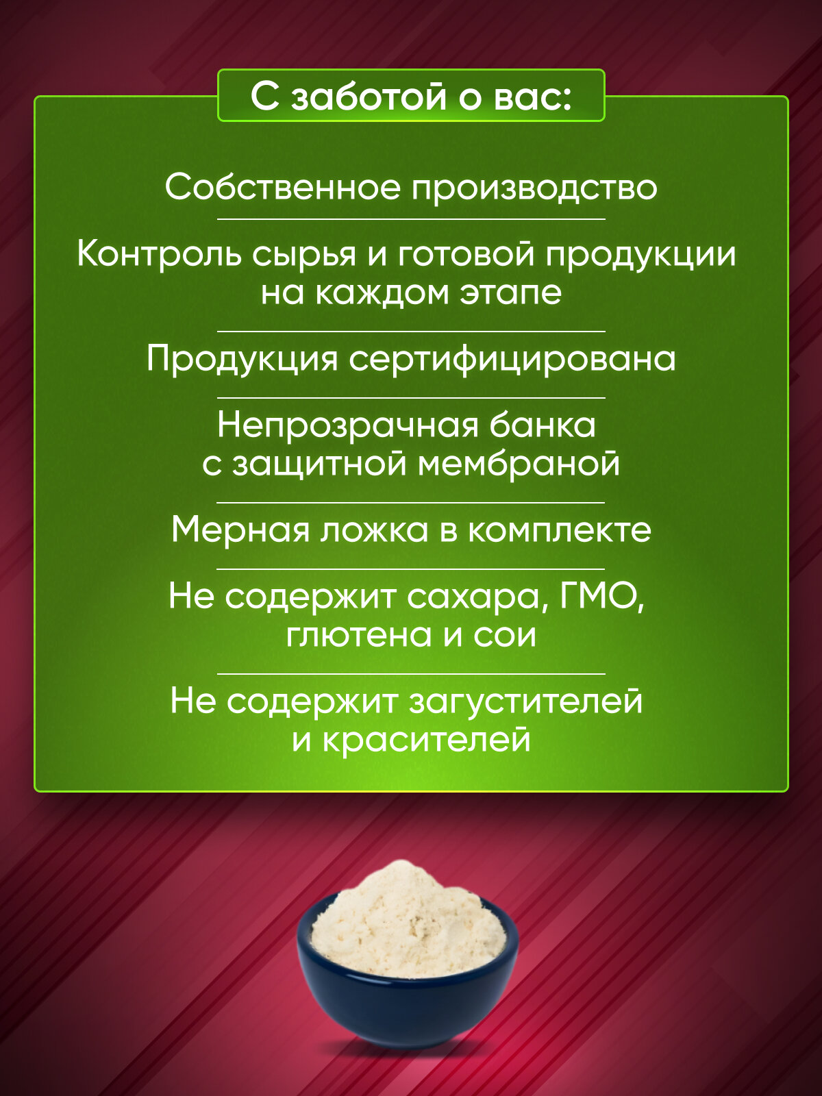 | Диетические особенности | без ГМО / без аспартама / без глюкозы / без глютена / без мальтодекстрина |