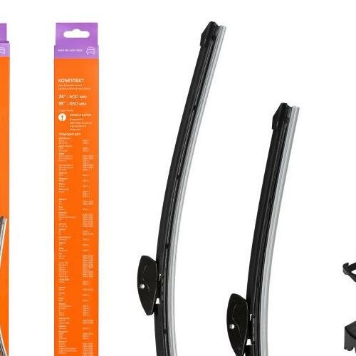 Отзывы на Щетки стеклоочистителя 600/450 мм (24/18) бескаркасные, 2 шт. 6 адаптеров (AWB-BK-600-450K) airline 1шт
