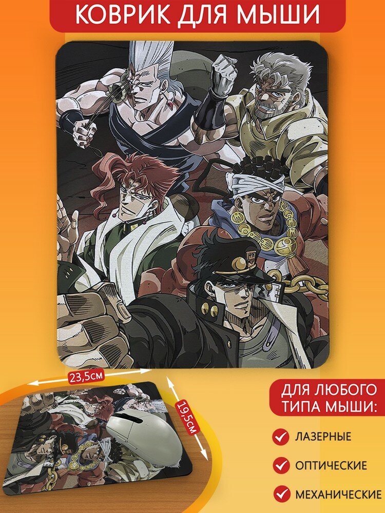 Коврик для мыши игровой, офисный с принтом, размер 25x30см, аниме JoJo ДжоДжо Джотаро Джованна - 8115