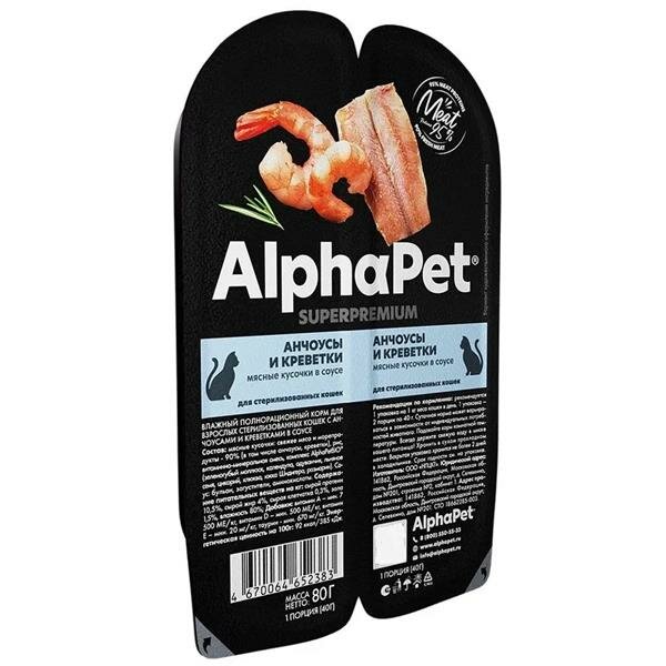 ALPHAPET SUPERPREMIUM 80 гр ламистер влажный корм для стерилизованных кошек анчоусы и креветки 45 шт 5 722 ₽