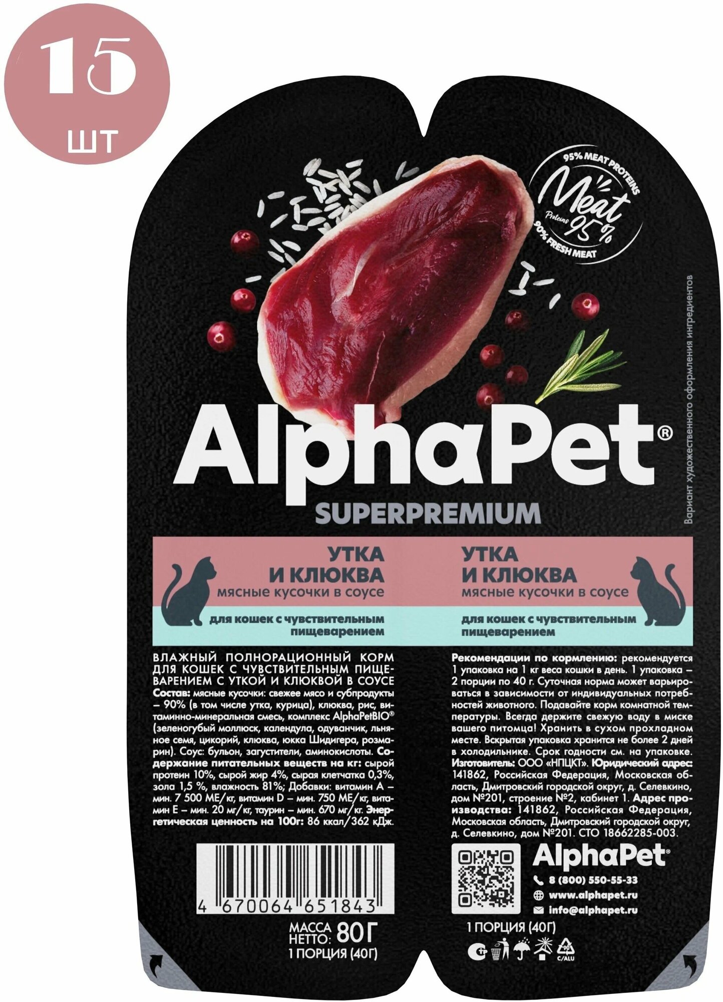 10 цен на Влажный корм для кошек AlphaPet Superpremium с уткой и клюквой в соусе упаковка 15 шт * 80 гр