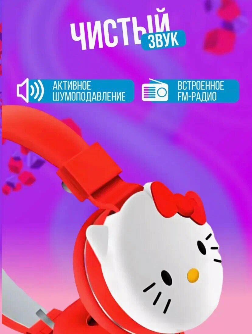 Наушники беспроводные Hello Kitty / Хеллоу Китти детские розовые с Bluetooth 5.2