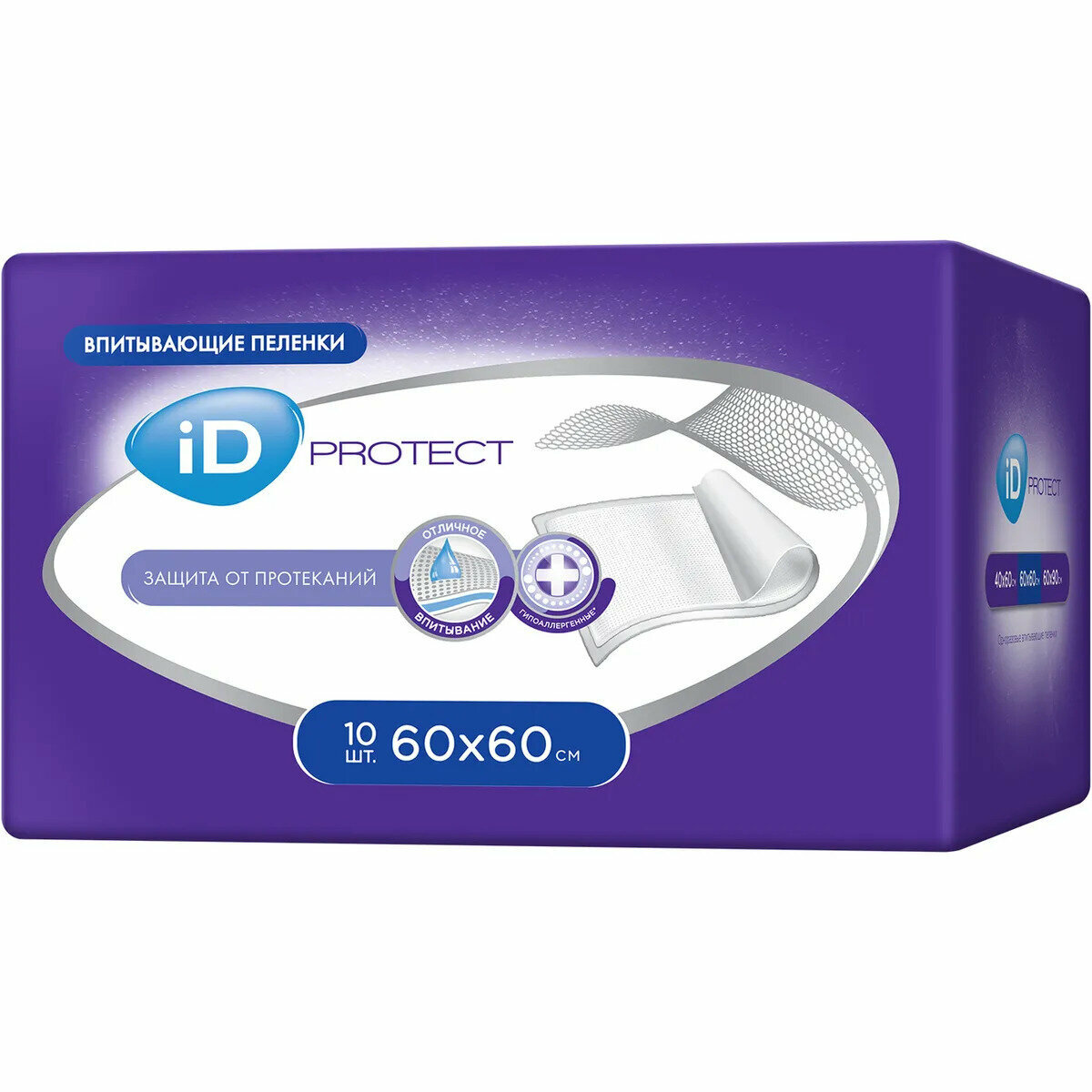 iD Пелёнки одноразовые впитывающие iD Protect, размер 60x60, 10 шт.