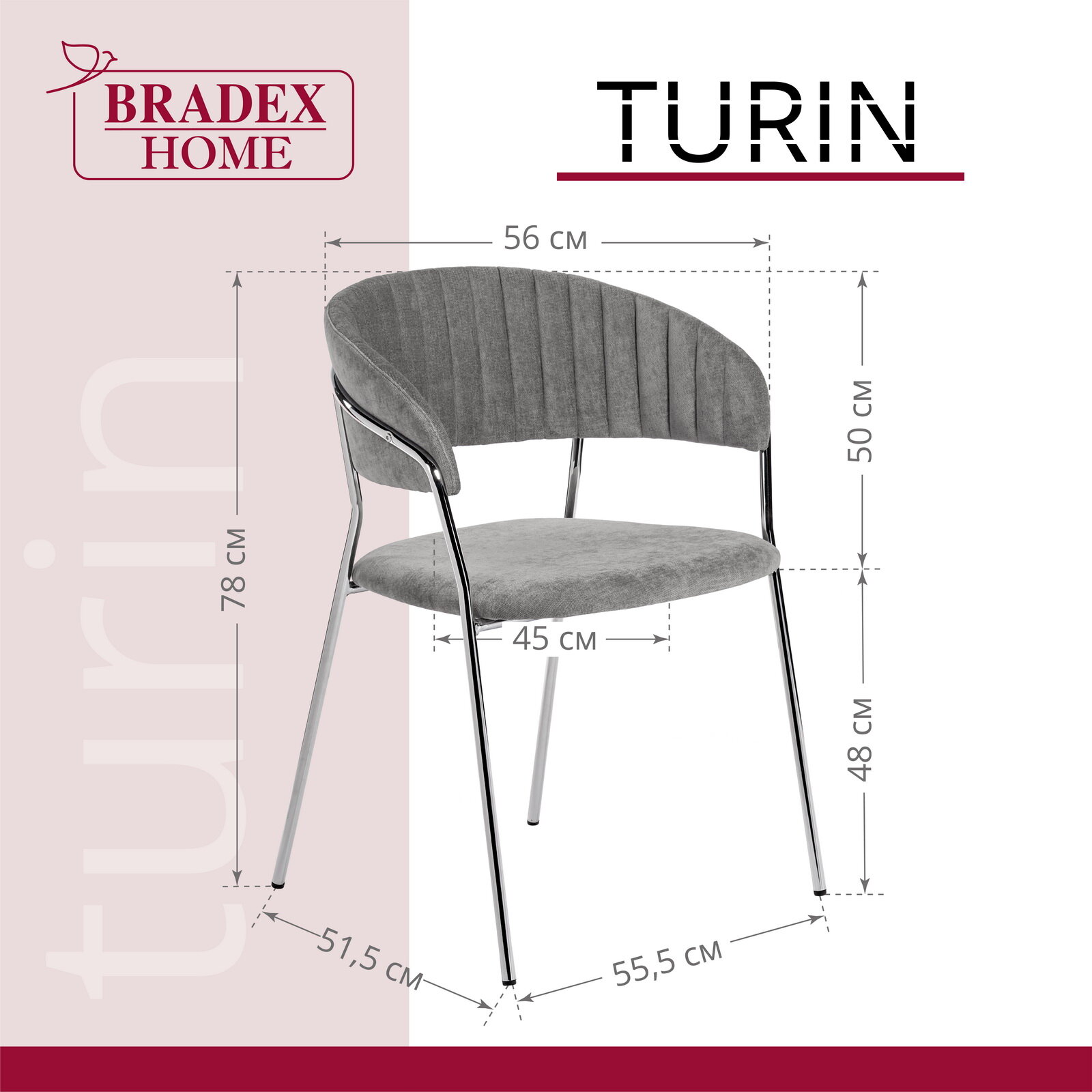 Стул BRADEXHOME Chester Темно-серый (велюр) Размеры: Высота 820мм Глубина 545мм Ширина 500мм