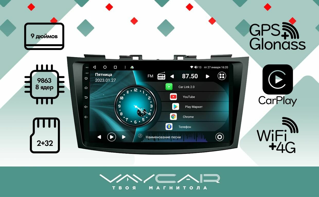 Магнитола Vaycar 09V2 для SUZUKI Swift 2010-2016 Андроид, 2+32Гб информация: