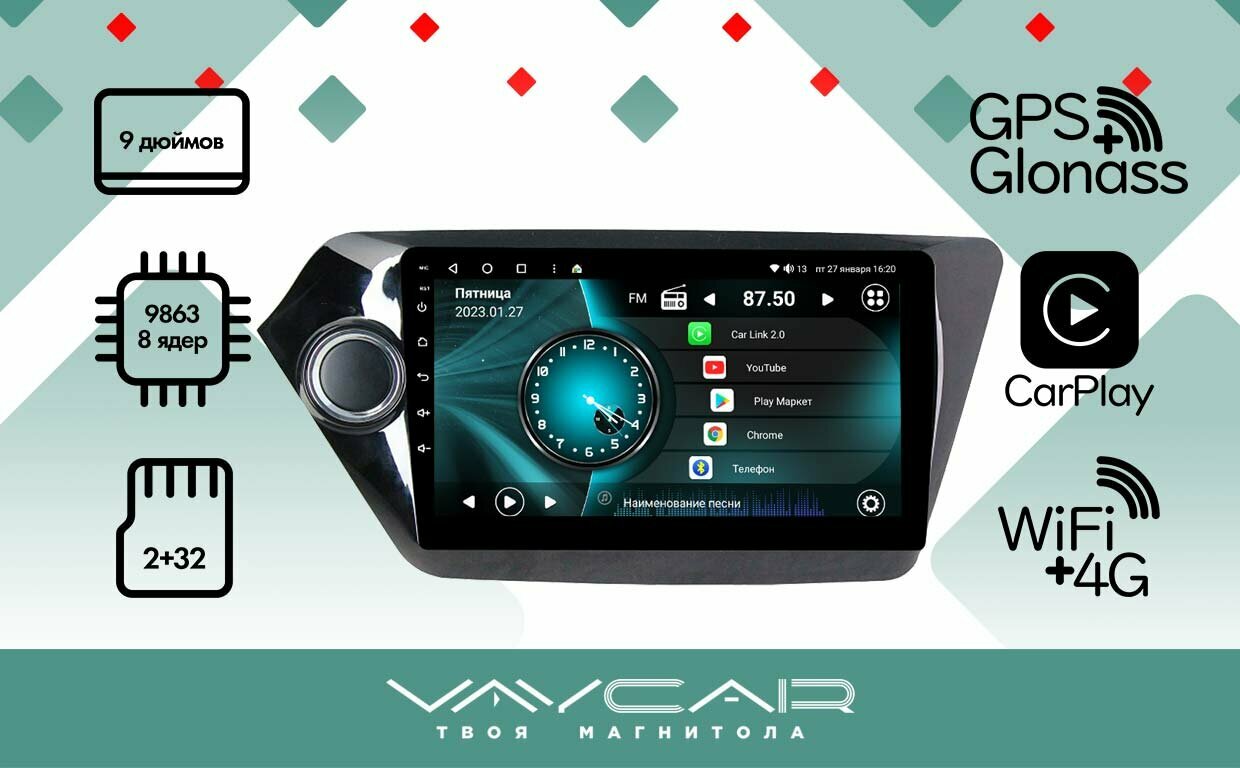 Магнитола Vaycar 09V2 для KIA Rio 2011-2016 Андроид, 2+32Гб информация: