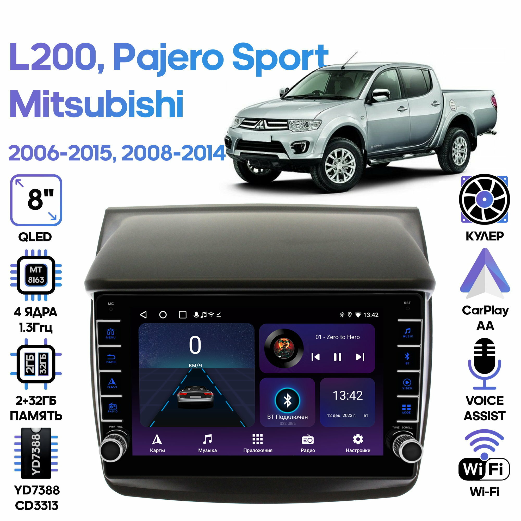 Штатная магнитола Wide Media Mitsubishi L200 2006 - 2015, Pajero Sport 2008 - 2014 / Android 9, 8 дюймов, WiFi, 2/32GB, 4 ядра информация: