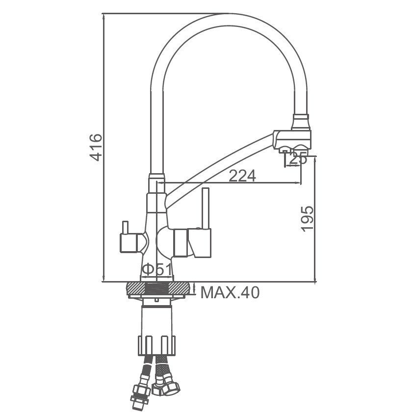 Смеситель для кухни с подключением к фильтру с питьевой водой из нержавеющей стали SUS304 Calorie CAL50116-3