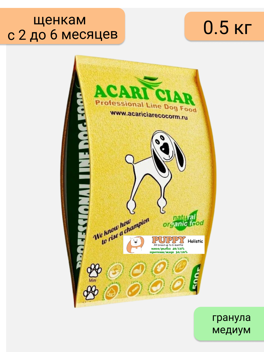 Сухой корм Acari Ciar для щенков с 2 до 6 месяцев Puppy 0,5 кг (гранула Медиум) информация:
