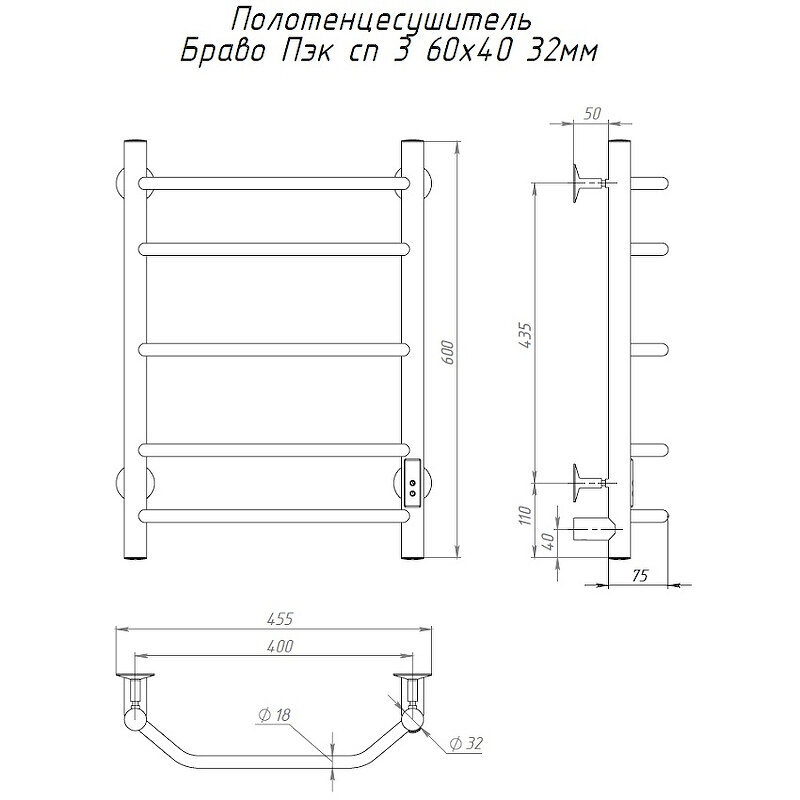 Электрический полотенцесушитель Тругор Браво Пэк СП 3 60x40 Хром информация: