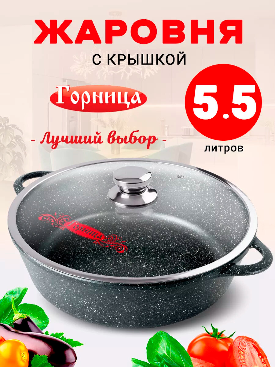 Жаровня 5,5л 320/95 Гранит с крышкой ж7132аг горница