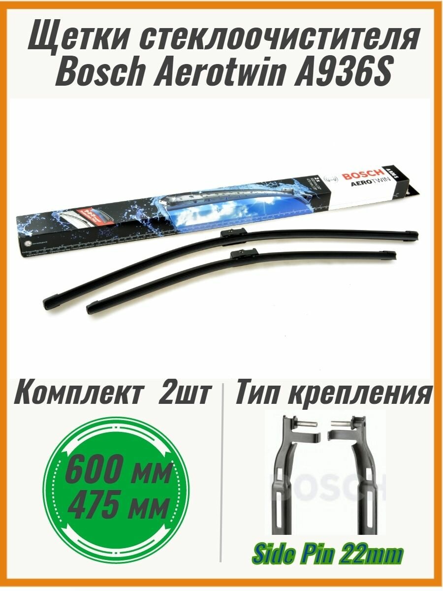 Комплект бескаркасных щеток стеклоочистителя BOSCH AEROTWIN 60 см /47.5 см 3397118936 (A936S)
