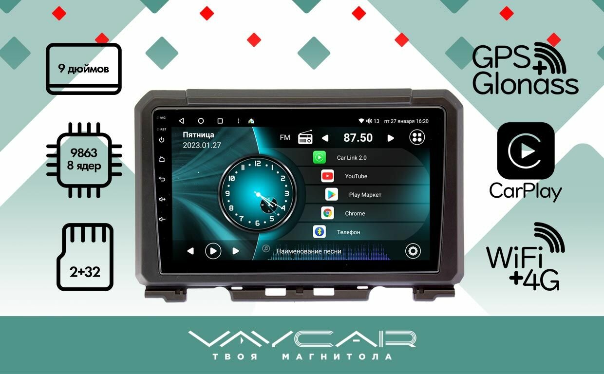Магнитола Vaycar 09V2 для SUZUKI Jimny 2019+ (Андроид, 2+32, 8 ядер, WiFi, BT, 4G, GPS, QLED 9")