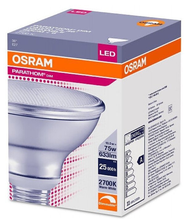 Отзывы на Лампа Светодиодная OSRAM 10Вт 220В Софит PAR30 E27 633Лм Диммируемая Ra90 угол 36° 2700К Теплый белый свет, уп. 1шт