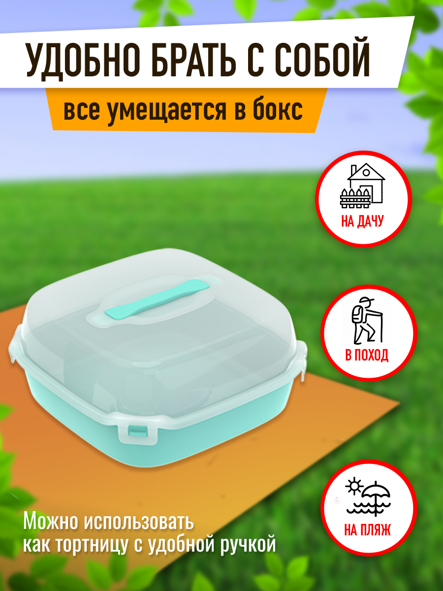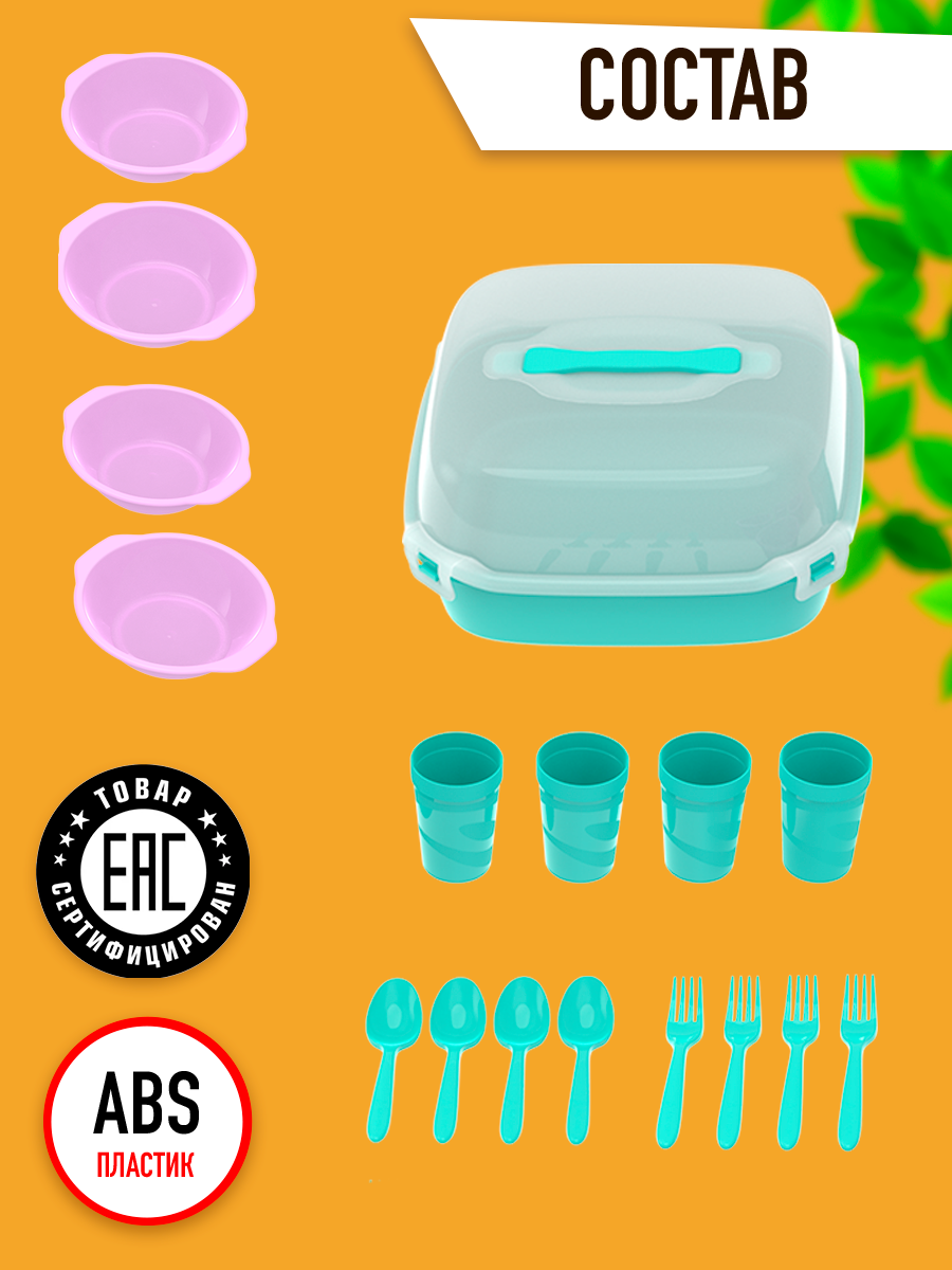 Набор походной пластиковой посуды в контейнере с ручкой для пикника, на шашлыки, для туризма, барбекю для 4 человек 17 предметов №24 АП 783 Пятница информация: