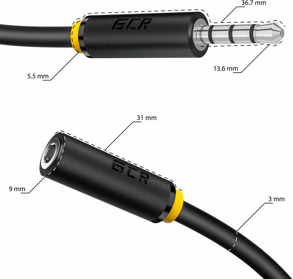 Удлинитель кабеля для гарнитуры aux Jack 3.5мм GCR для JBL SONY Sennheiser Panasonic стерео 50 см aux удлинитель для наушников