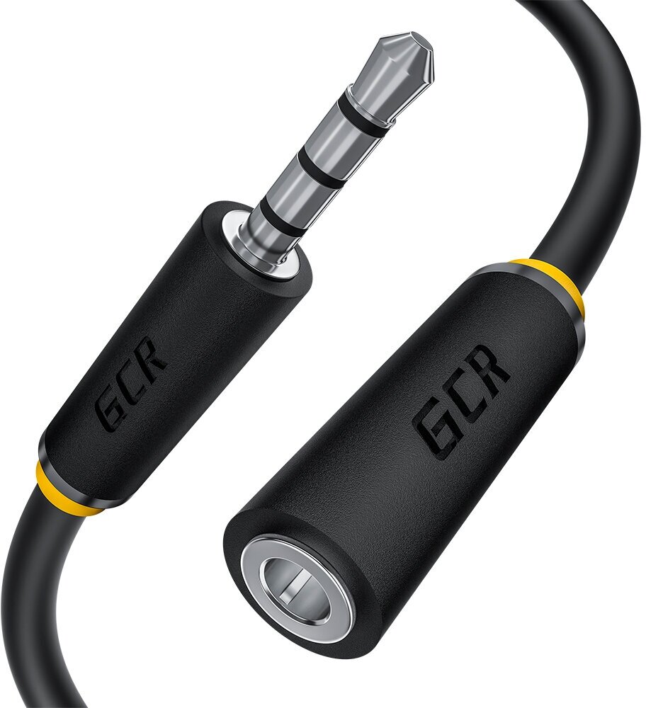 GCR Удлинитель для гарнитуры 3.0m jack 3,5mm/jack 3,5mm черный, желтая окантовка, 28AWG, M/F