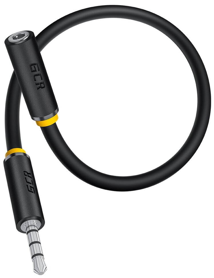 GCR Удлинитель для гарнитуры 0.15m jack 3,5mm/jack 3,5mm черный, желтая окантовка, 28AWG, M/F, GCR-53262