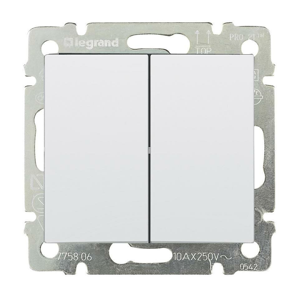 Выключатель Legrand 774405 Valena CLASSIC - двухклавишный, 10 A, 250 В~, белый 553 ₽