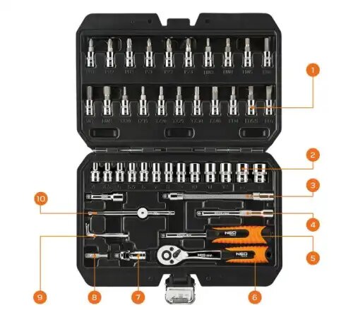 10 цен на Набор головок с трещоткой 46 шт 1 4 CrV