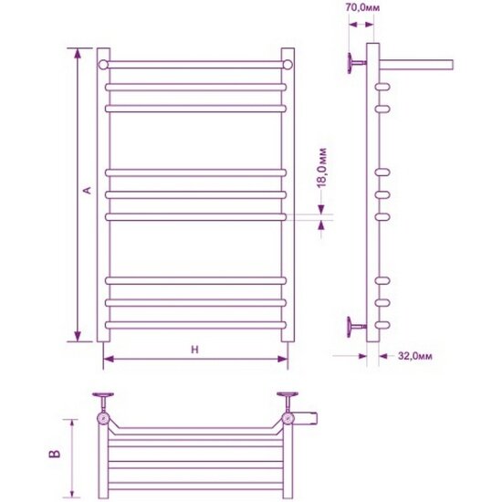 Полотенцесушитель ZOX ЛЦ 80х50х50 1'' полка 9 перек ТРАПЕЦИЯ-2 левое бок подк (крепеж, без мон ком) информация: