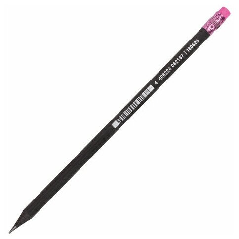 Карандаш чернографитный BRAUBERG, "Black Wood", НВ, черное дерево, c резинкой ассорти, черный корпус, заточенный, 180629, 9 шт информация: