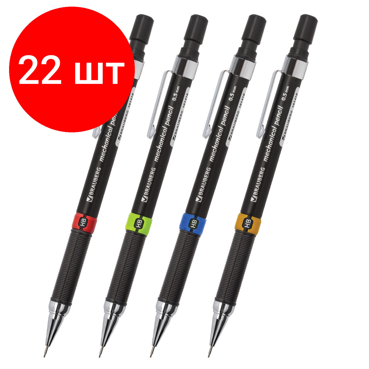 10 цен на Комплект 22 шт, Карандаш механический 0.5 мм, BRAUBERG "Ring", ластик, корпус черный, детали ассорти, 181418