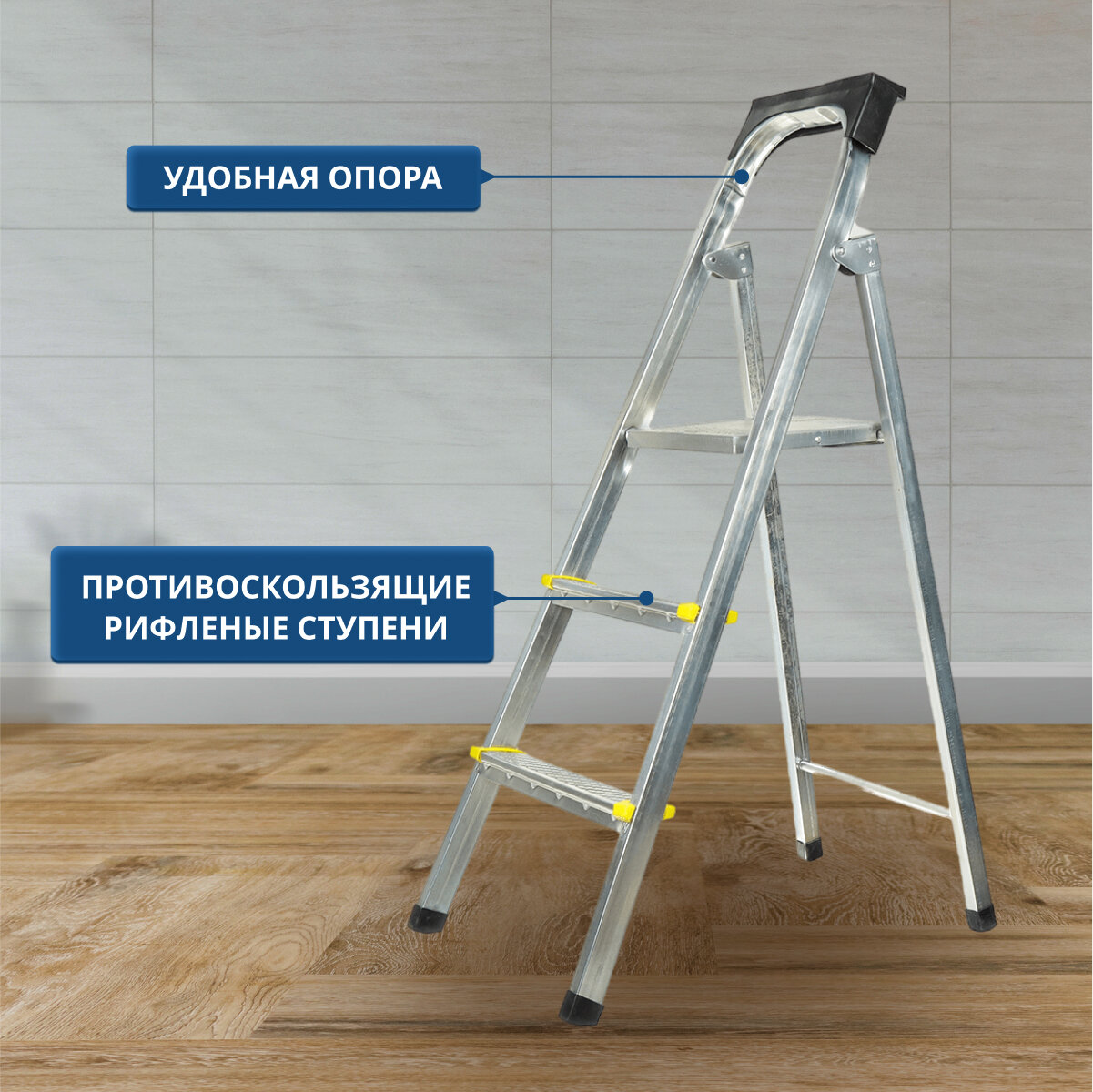 Стремянка алюминиевая Standers 4 ступени, максимальная нагрузка 150 кг