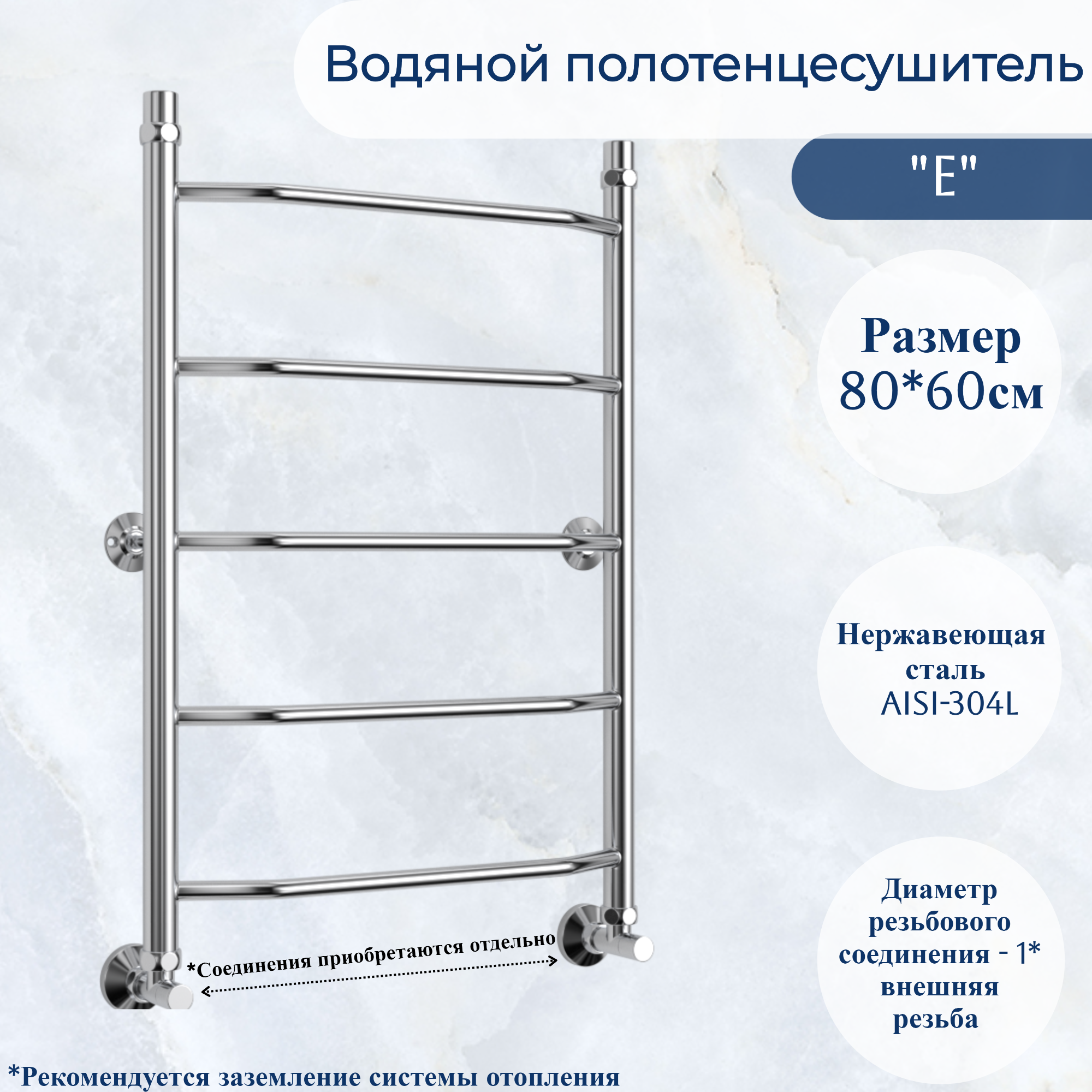 Полотенцесушитель Водяной юрма "E" 80/60см из нержавеющей стали информация: