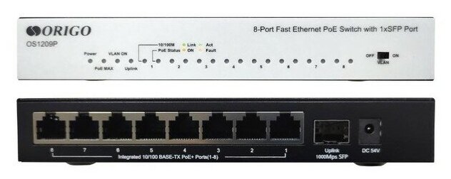 Отзывы на ORIGO неуправляемый PoE коммутатор, кол-во портов 8x100 Мбит/с, 1x1000Мбит/с (OS1209P/80W/A1A), черный