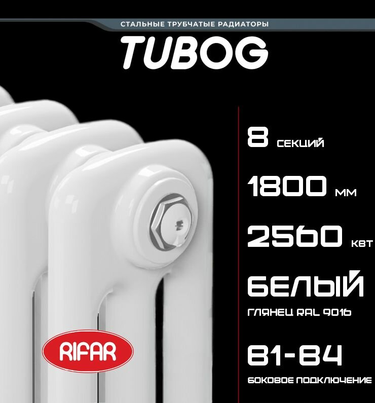 Радиатор отопления, трубчатый, сталь, RIFAR TUBOG TUB 3180-08, подключение боковое, белый информация: