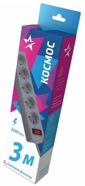 Характиристики этого товара не найдены!Отзывы на Сетевой фильтр Космос FKsm 5 розеток с заземлением 3x0.75 мм 5 м 2200 Вт цвет серый