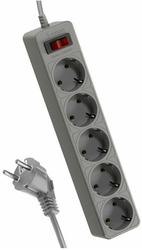 Сетевой фильтр Космос FKsm 5 розеток с заземлением 3x0.75 мм 5 м 2200 Вт цвет серый информация: