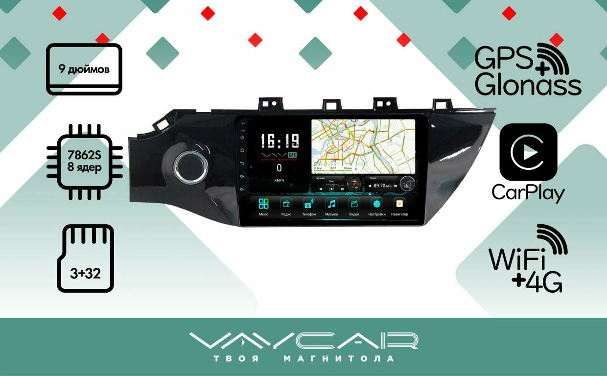 Магнитола Vaycar 09V2 для KIA Rio 2017+ (Андроид, 2+32, 8 ядер, WiFi, BT, 4G, GPS, QLED 9")