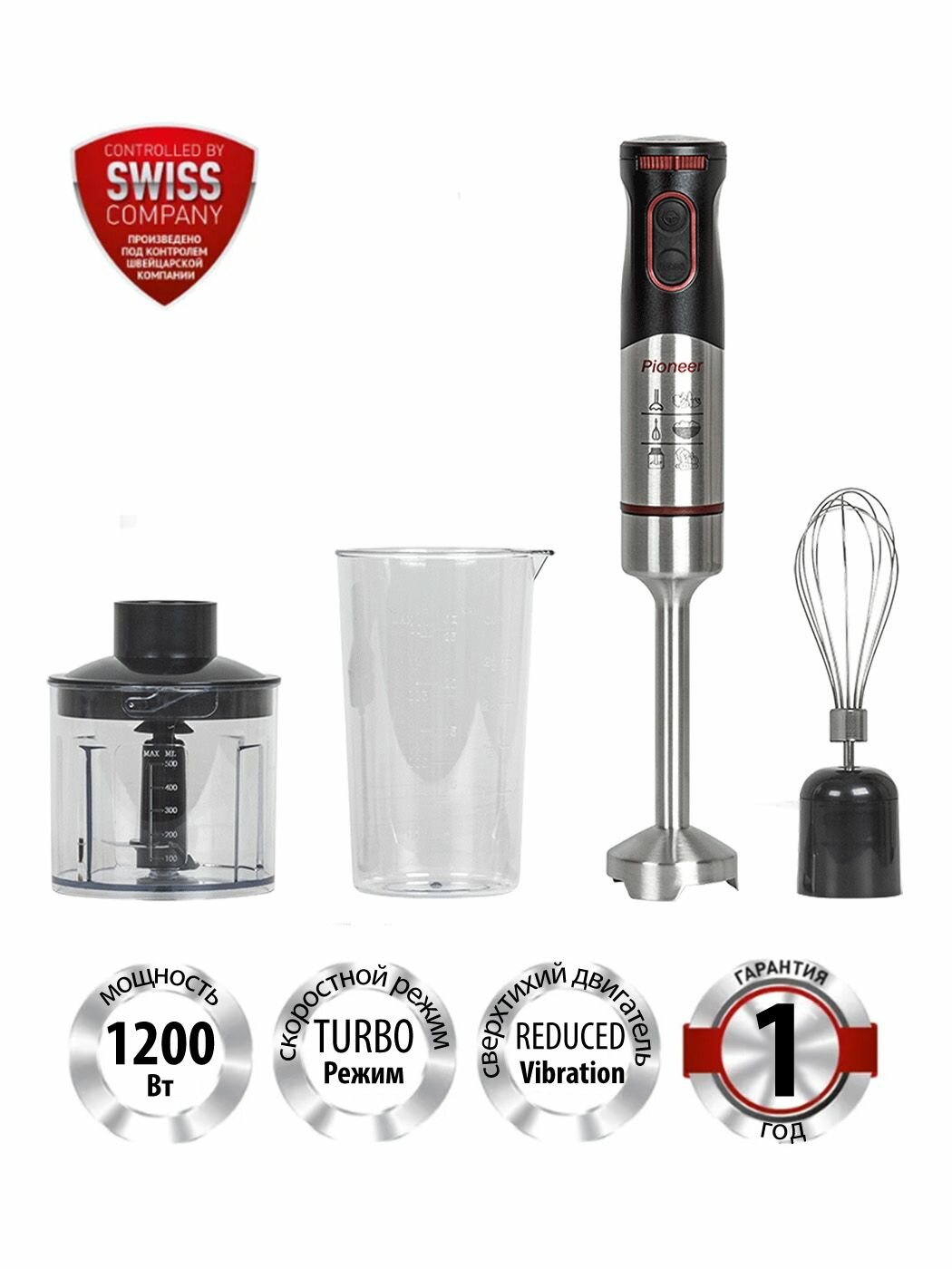 Блендер 3 в 1 Pioneer HB128S, миксер + измельчитель c S-образным ножом для твердых продуктов, 3 насадки, турборежим, 1200 Вт информация:
