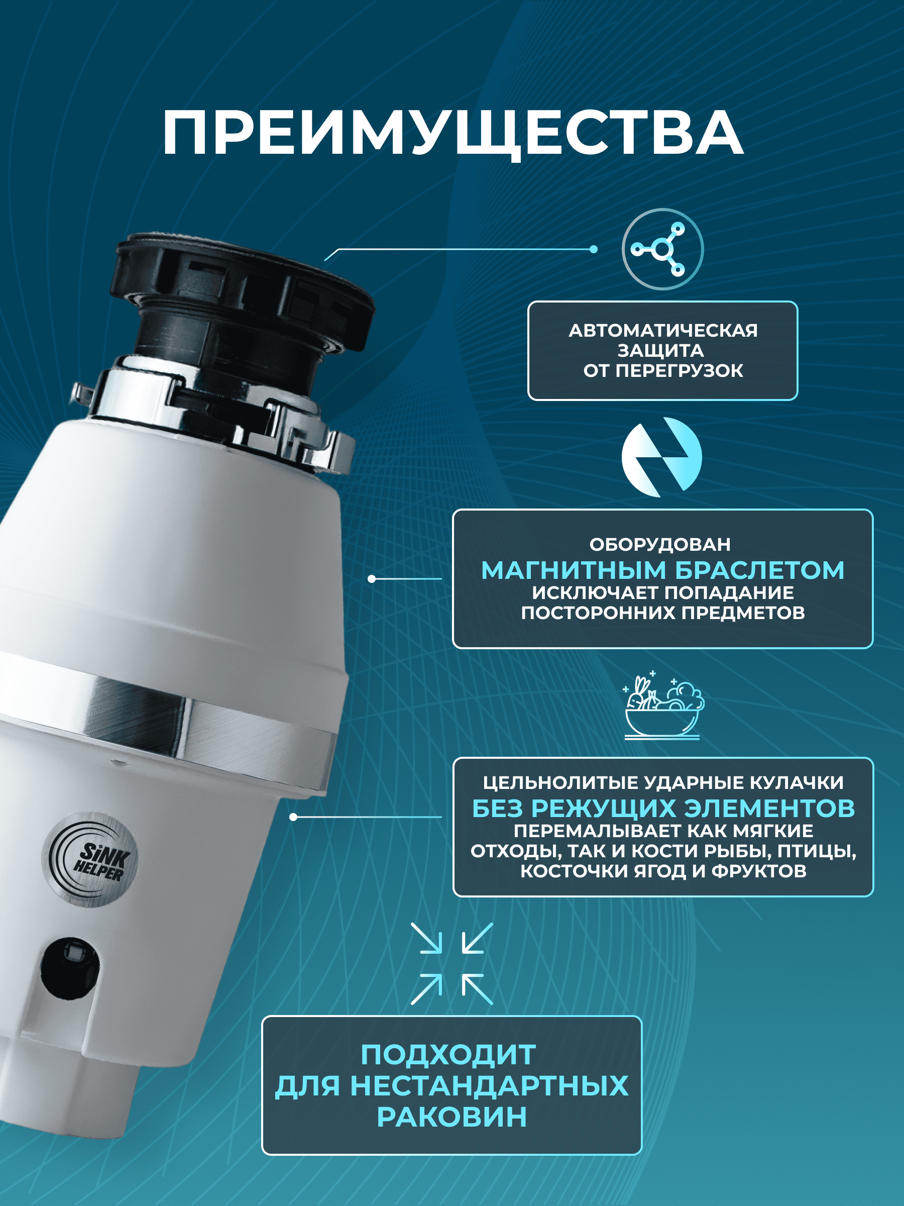 SINK HELPER Измельчитель пищевых отходов Middle H-25 информация: