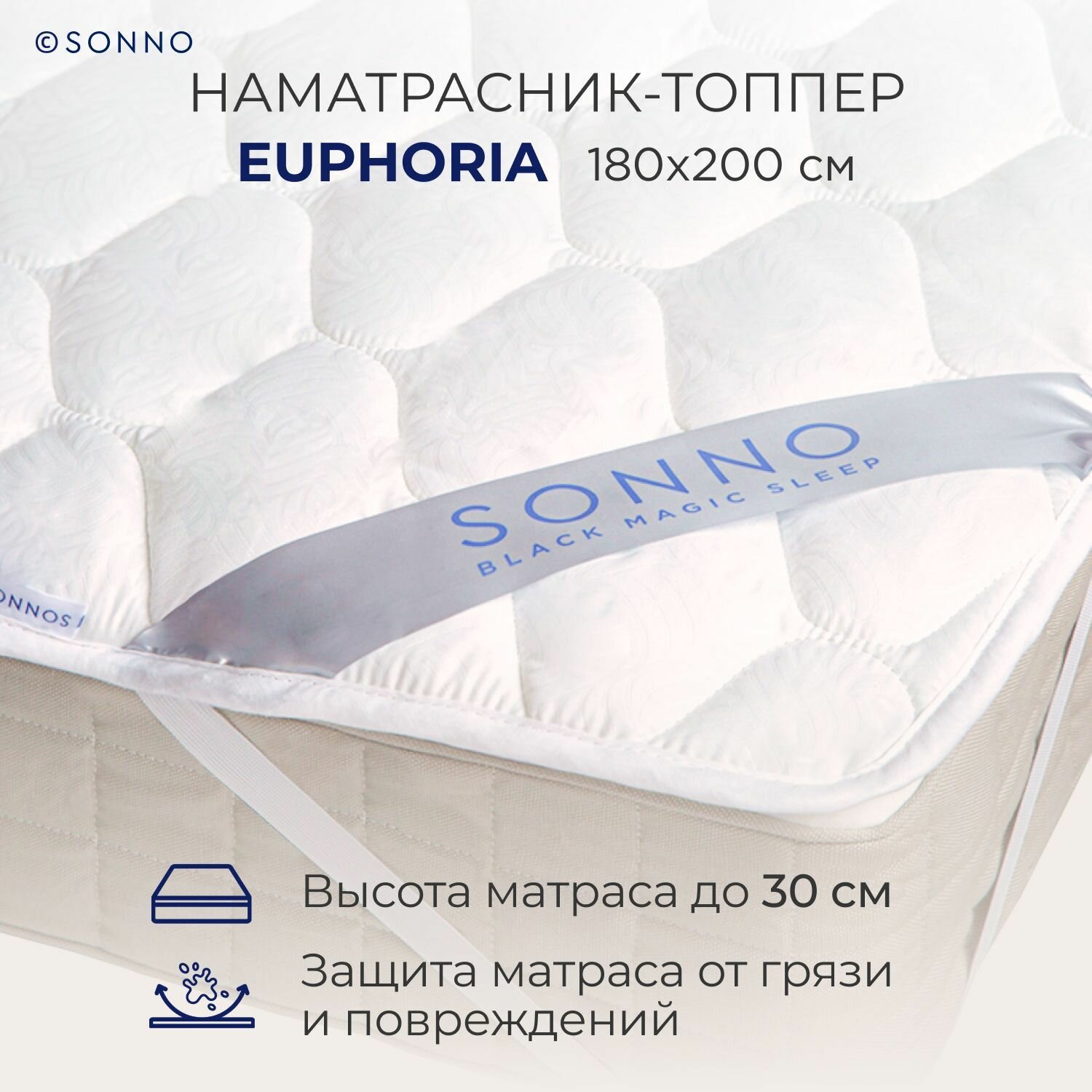Наматрасник-топпер, чехол на матрас SONNO EUPHORIA, гипоаллергенный, защитный, стеганый, с резинками по углам, 180х200 см информация: