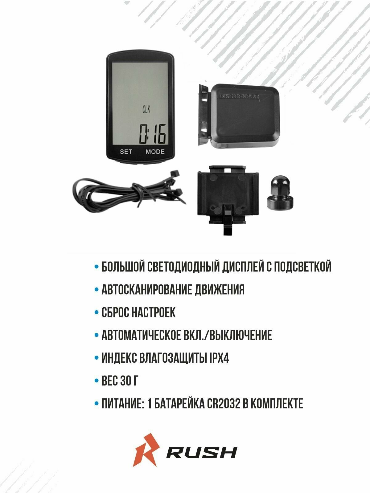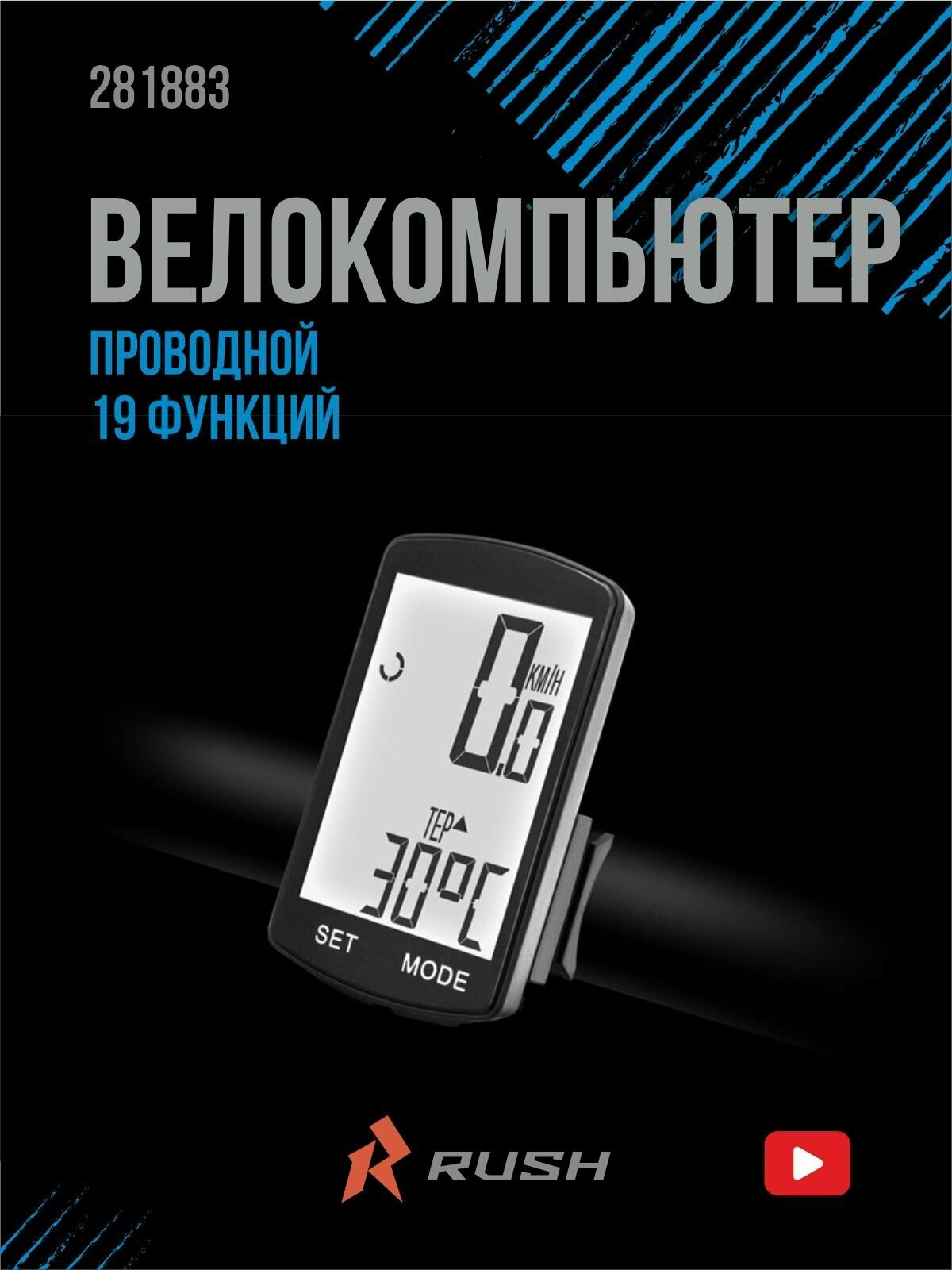 Велокомпьютер проводной: 19 функций RUSH HOUR JY-M33-GL спидометр аксессуар для велосипеда информация: