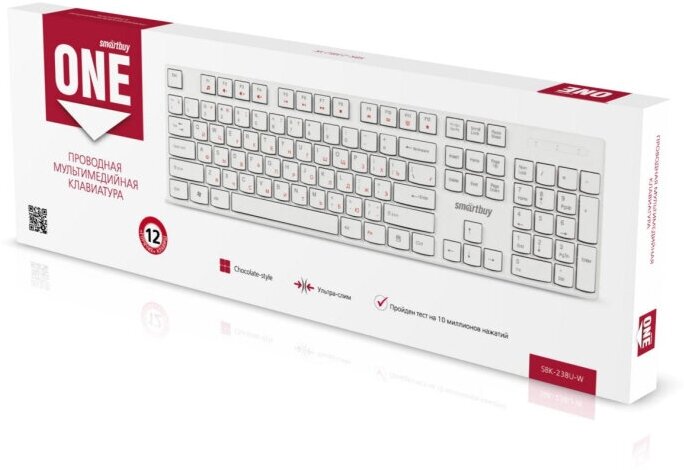 Клавиатура SmartBuy ONE 238, USB, мультимедийная, белая (SBK-238U-W)
