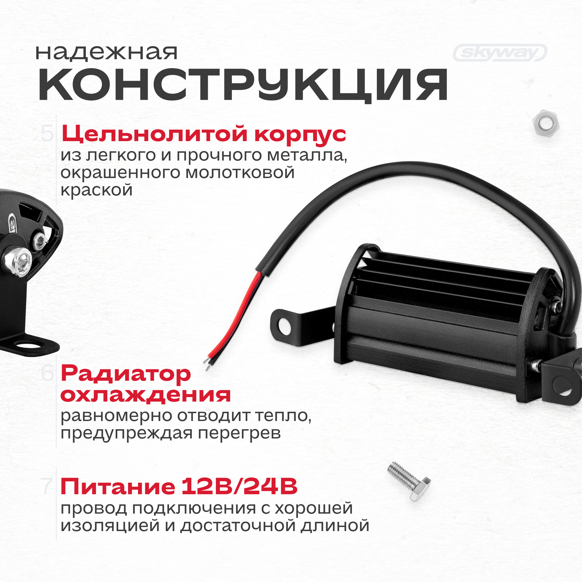 SKYWAY S07201076 Фара светодиодная OFF ROAD 106*30мм прямоугольная 12V/24V 18W 6000К 3 диода Дальний свет; SKYWAY 966 ₽