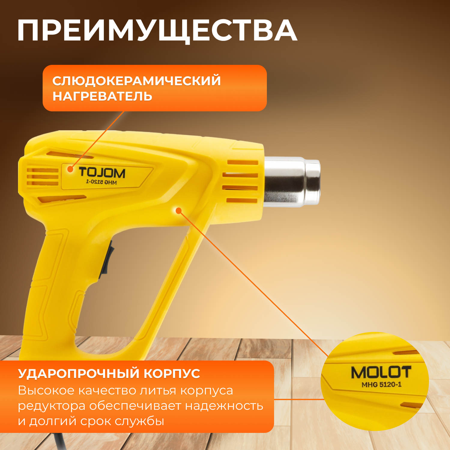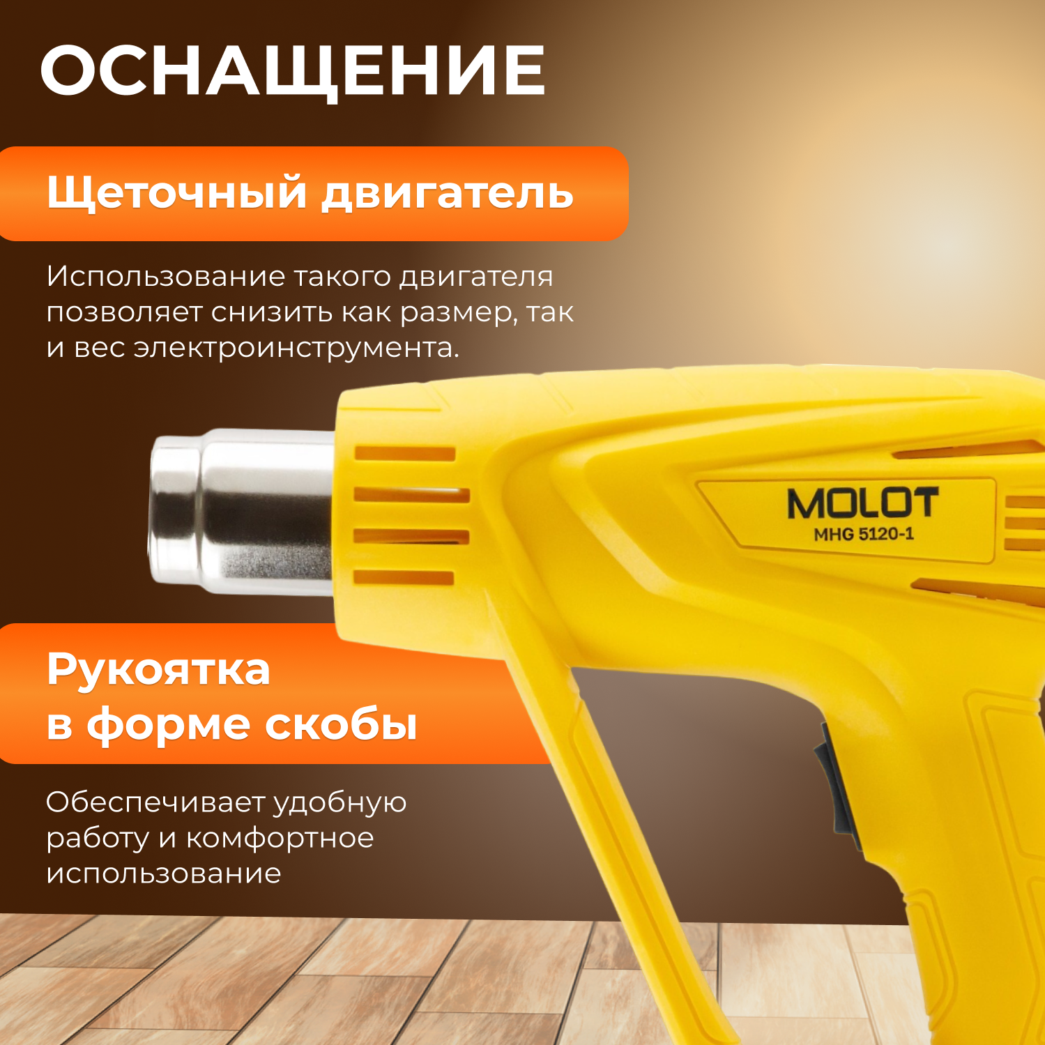 Фен-термовоздуходувка Molot строительный MHG 5120-1 + набор сопл информация: